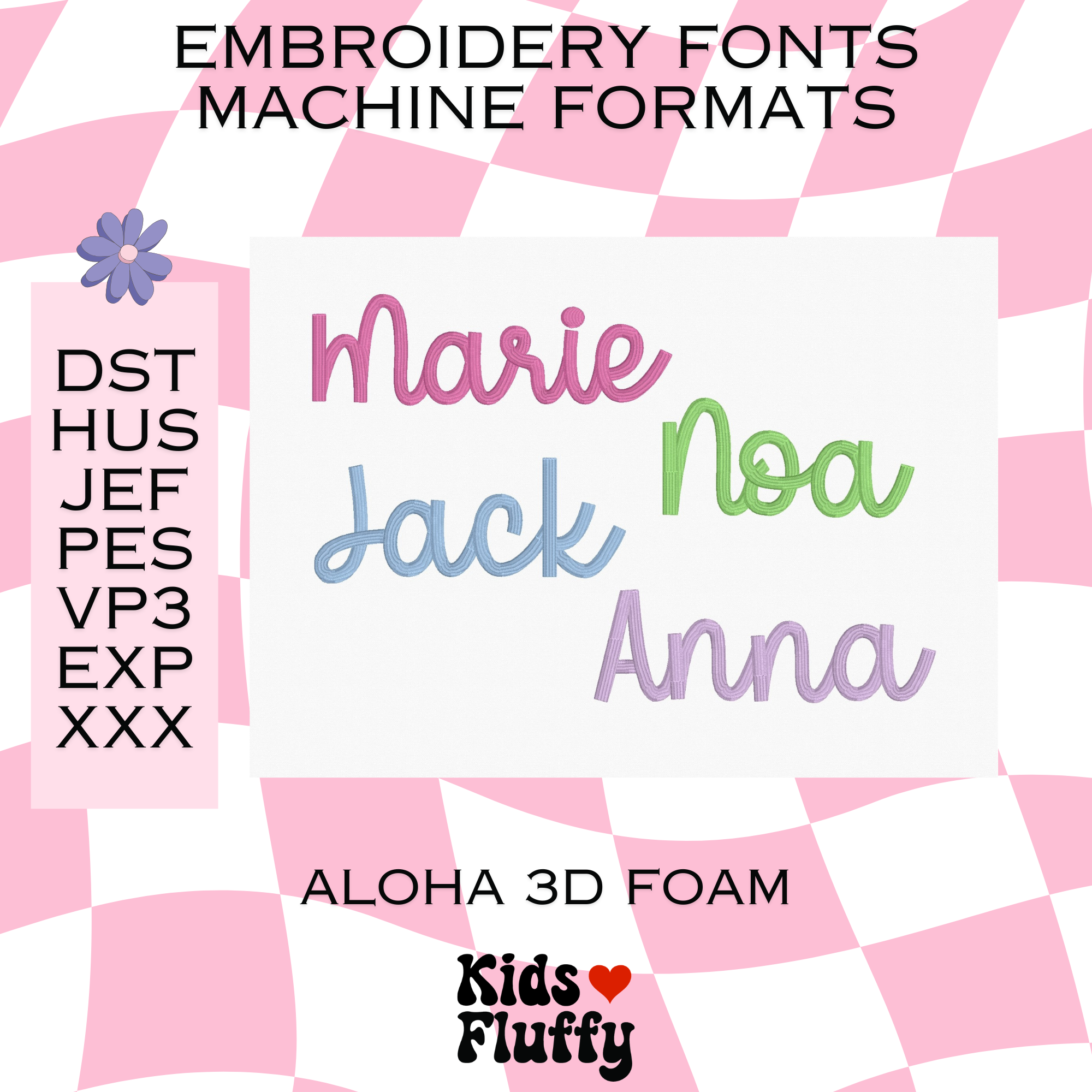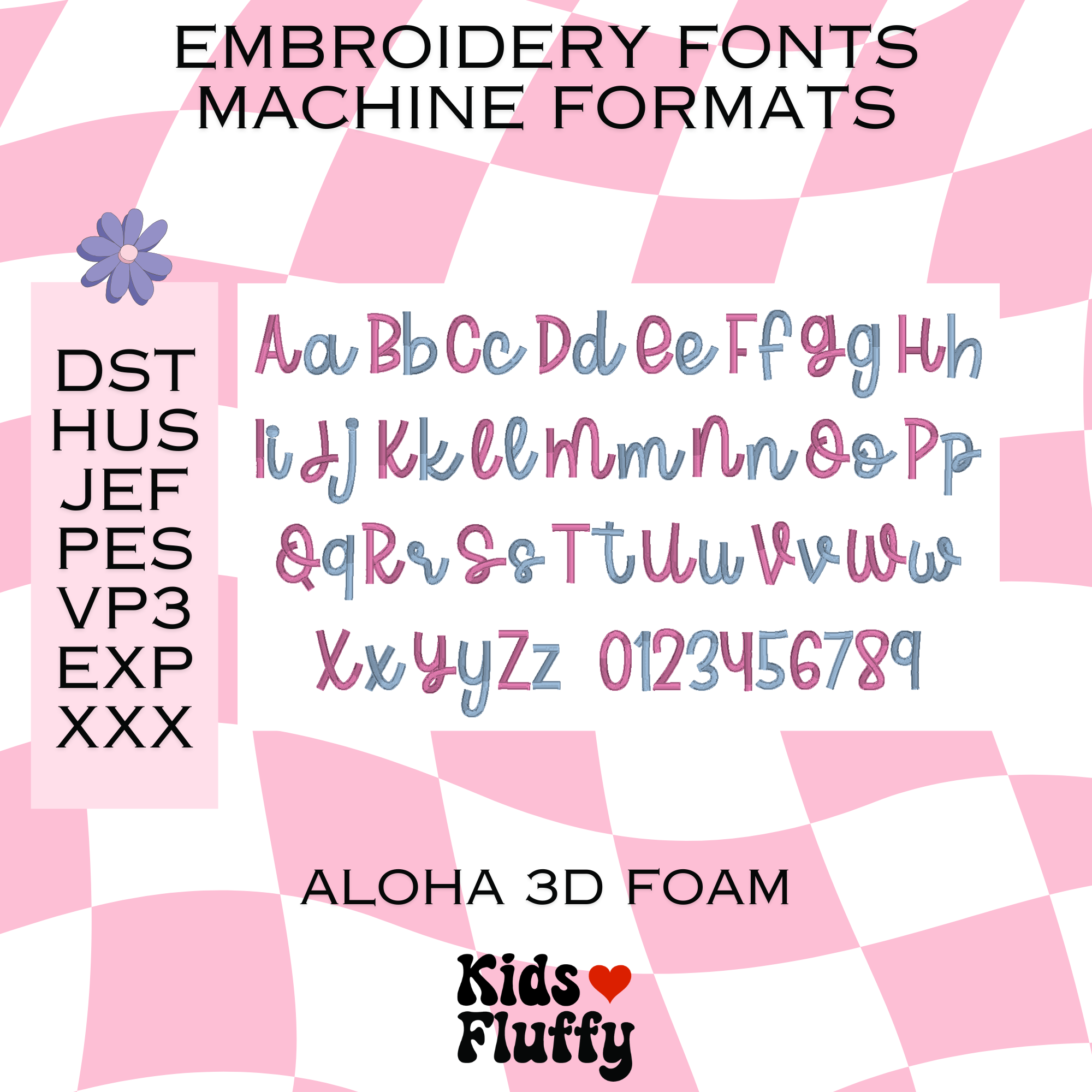 This is a digital download machine Embroidery Font Aloha 3D Foam, instant download.